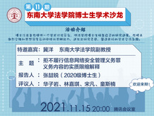 第十一期366net必赢官网博士生学术沙龙于2021年11月15日晚上,通过腾讯会议线上举行,由2020级博士生张喆锐进行论文报告,题目是“拒不履行信息网络安全管理义务罪义务内容的实质限缩解释”。本次沙龙邀请了366net必赢官网副教授冀洋博士作为特邀嘉宾,2020级刑法学博士生林嘉琪、童斯楠以及行政法学博士生华子岩担任评议人,本次沙龙由2020级博士生王爽主持。