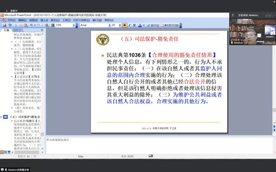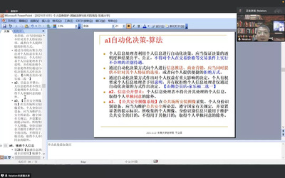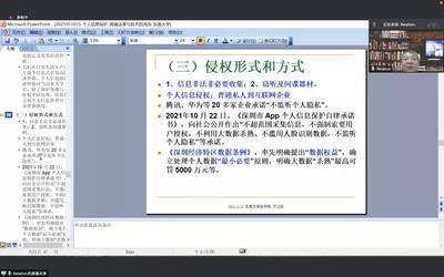第四部分于教授为同学们介绍了个人信息保护制度中的核心概念与理念,就个人信息、数据、网络安全、电子商务与平台经营者、新基建、“算法”自动化决策、互联网个人信息安全保护指南的定义进行了阐述,对个人信息的权利属性从隐私权、人格权、数据权利、财产权做出了解读,对侵权形式和方式做出了归纳。