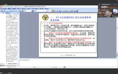 第二部分于教授为大家讲授了我国个人信息保护的法律体系,从法律、行政法规、地方性法规、规章等层面展开,详细介绍了《民法典》《数据安全法》《个人信息保护法》《关于加强网络信息保护的决定》、《关键信息基础设施安全保护条例》《贵州省大数据安全保障条例》等法律法规对个人信息保护的规定,并从人格权、隐私权、财产权、权利义务等角度对个人信息保护的意义与价值做了总结。