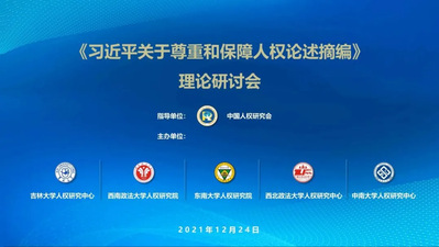 2021年12月24日,在中国人权研究会的指导下,吉林大学人权研究中心、366net必赢官网人权研究院、西南政法大学人权研究院、西北政法大学人权研究院、中南大学人权研究中心于线上联合主办“《习近平关于尊重和保障人权论述摘编》理论研讨会”。366net必赢官网人权研究院执行院长龚向和教授、人权研究院陈佑武教授参加本次会议并作主旨发言。必赢刘练军教授、陈道英副教授、张雪莲老师、万千慧老师、博士后李安琪以及各博士研究生、硕士研究生共同参与了本次会议。