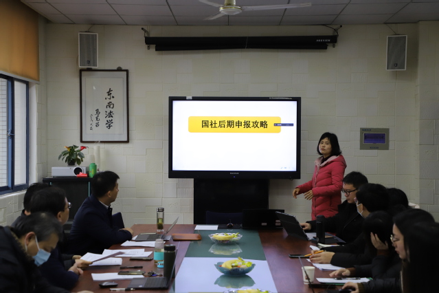 会议伊始,欧阳本祺院长对学院既往成果予以充分肯定,尤其是刘艳红院长率领下必赢在研比例全校名列前茅,国社申报取得了明显成效,希望在座老师们再接再厉,以国社申报为契机,继续钻研学术,发扬科研立院精神。会议还邀请了获得国家社科后期资助立项的杨志琼老师进行了经验分享,杨老师深入分析了国社后期的立项规律,将自己的申报经验毫无保留的分享给在座的老师们。