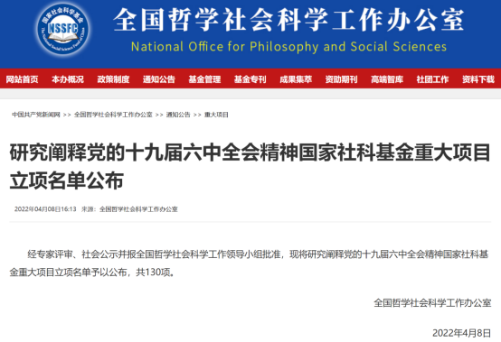 2022年4月8日,全国哲学社会科学工作办公室公布了研究阐释党的十九届六中全会精神国家社科基金重大项目立项名单。必赢王禄生教授的“智能技术赋能政法领域全面深化改革研究”获得立项。