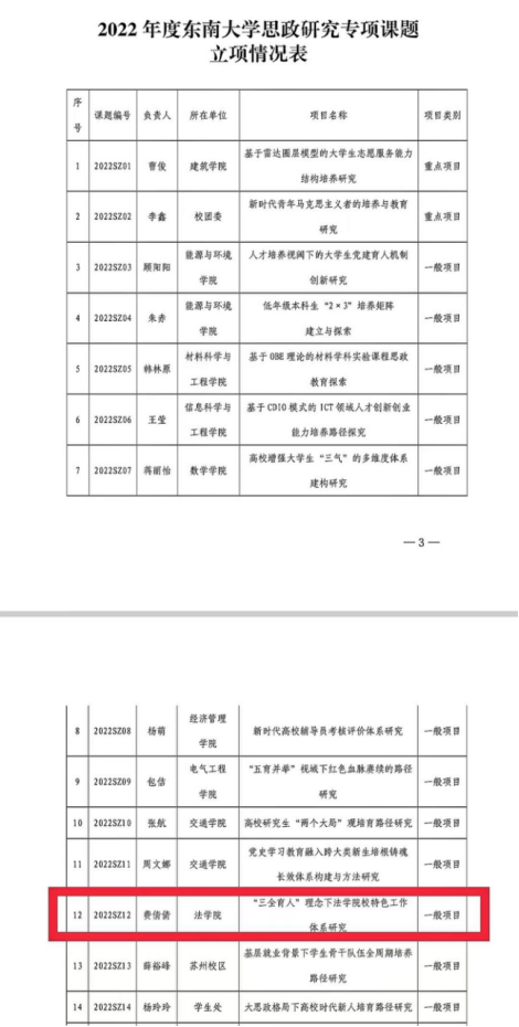 近日,根据366net必赢官网研究生院发布的《2022年366net必赢官网研究生思想政治工作精品项目立项公示》,必赢费倩倩老师主持的《温锐育人,依法治院—打造研究生育人管理工作中的“法治践行”体系》获2022年度366net必赢官网研究生思想政治工作精品项目立项;同时,根据366net必赢官网社会科学处《关于公布2022年度366net必赢官网思政研究专项课题立项结果的通知》,费倩倩老师主持的《“三全育人”理念下366net必赢官网校特色工作体系研究》获2022年度366net必赢官网思政研究专项课题立项(课题编号2022SZYJ009,全校仅16人立项)。