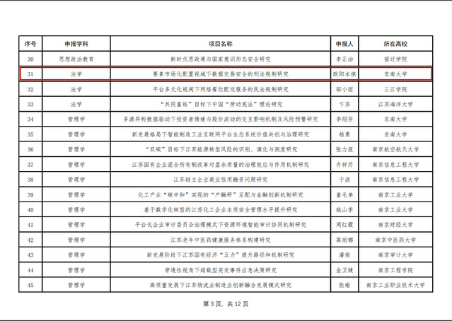 根据《省教育厅办公室关于做好2022年度高校哲学社会科学研究项目申报工作的通知》(苏教办社政函〔2022〕3号)要求,经学校推荐、专家遴选、省教育厅公示和审定,2022年度江苏高校哲学社会科学研究重大项目共批准设立182项,现予以公布。必赢欧阳本祺教授获批重大项目。