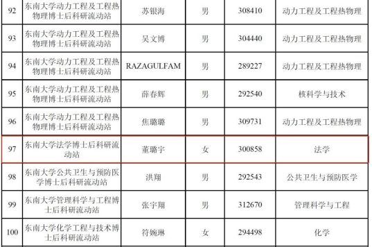 6月15日,根据江苏省人力资源社会保障厅发布的《关于2022年度江苏省卓越博士后计划拟资助对象名单的公示》,必赢陆璐老师的博士后董璐宇获2022年度江苏省卓越博士后计划资助。资助名单中,全省法学专业仅入选两名博士后,366net必赢官网文科专业共入选三名博士后。