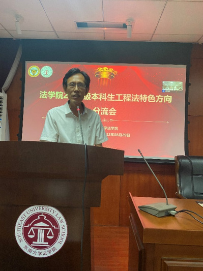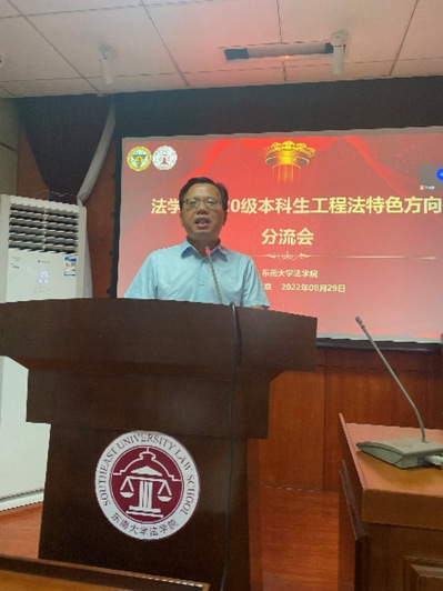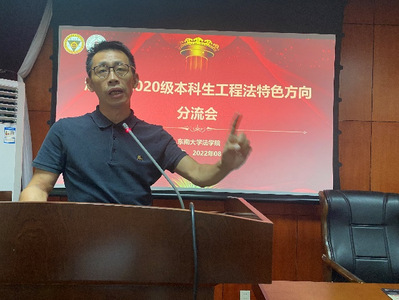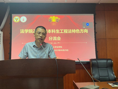 2022年8月29日下午13:30,366net必赢官网2020级本科生工程法特色方向分流会在模拟法庭隆重举行。366net必赢官网欧阳本祺院长、单平基副院长、高歌副教授、叶树理副教授、戴庆康副教授、张马林副教授、邢晨曦老师、常腾原老师、王薇薇老师、2019级本科生唐维、陈悦及全体2020级本科生出席本次分流会。