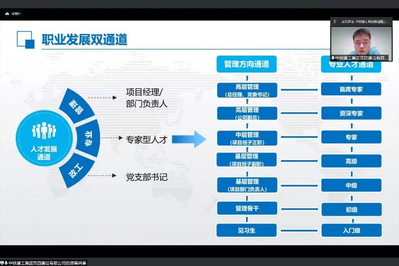 中铁建工集团第四建设有限公司南京分公司人事部洪训洲部长应邀发言。他介绍了该公司的基本架构以及薪资待遇。中铁建工集团有限公司始建于1953年,是世界企业、世界品牌双500强企业——中国中铁的骨干成员。同时,公司集勘测设计、房地产开发、工程施工、设备安装、装修装饰、市政交通、铁路新线、工程监理、大型钢结构制作安装等为一体。公司拥有国家建筑工程施工总承包、铁路工程和公路施工总承包“三特级”资质。中铁建工集团第四建设有限公司南京分公司业务板块主要有四部分,分别是:铁路工程、工业与民用建筑、市政工程、建筑安装。本公司薪资结构也由多个部分组成:基本工资、绩效工资、过程奖励、责任兑现、各种补贴等等。此外,员工还享有各种福利待遇,例如五险一金、企业年金、补充医疗保险以及员工体检、专业培训等等。最后,洪部长提出了工程法人才应当具备的通用素养,鼓励同学们要早日具备工作责任、政治素养、学习能力、业务能力、团结协作、执行力、理解能力、应急处置和创新能力,并欢迎同学们去该公司尝试更多的可能性。
