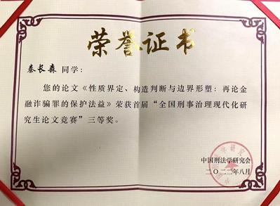 2022年8月23日,“刑事治理现代化研究生论文竞赛”正赛组委会正式公布论文获奖名单,必赢4位博士和2位硕士获二等奖等数项奖励。