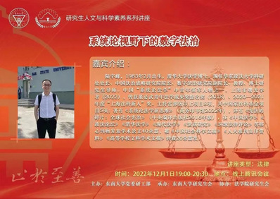 华东政法大学科研处处长、中国法治战略研究院院长、数字法治研究院副院长、教授、博士研究生导师陆宇峰教授与我们一同探讨了“系统论视野下的数字法治”,为同学们明确了“数字正义”的核心指向、当下困境和未来可能。