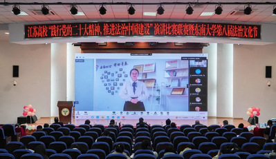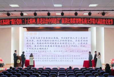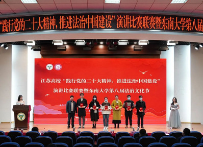 12月11日下午两点,江苏高校“践行党的二十大精神,推进法治中国建设”演讲比赛联赛暨366net必赢官网第八届法治文化节决赛在纪忠楼学术报告厅举行。