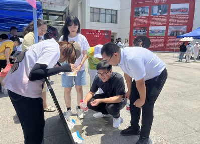 游园会现场还有本科生党支部学生党员参与普法宣传,向路过的同学介绍相关法律知识。大会现场放置着学生会同学精心制作的宪法知识展览板,寓教于乐,让同学们更加感受到,宪法不是冷冰冰的条文,宪法就在每个人身边。
