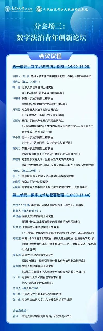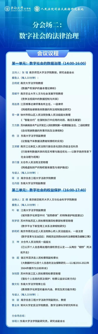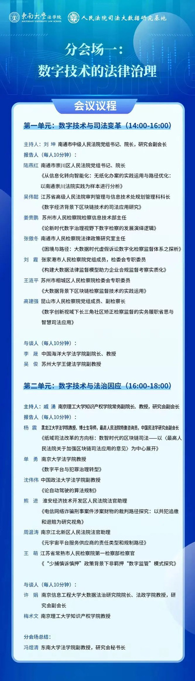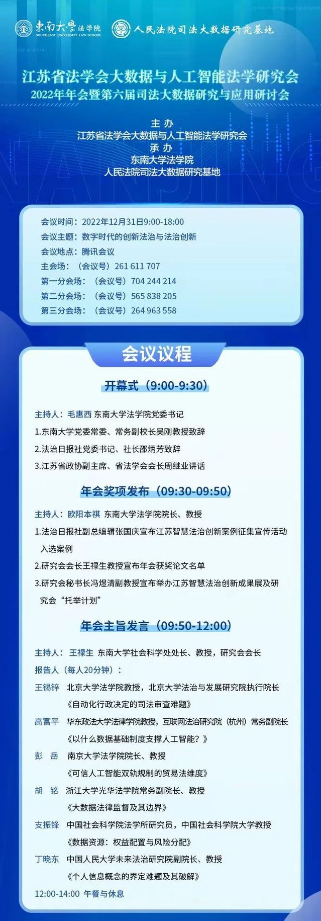江苏省法学会大数据与人工智能法学研究会2022年年会暨第六届司法大数据研究与应用研讨会会议议程