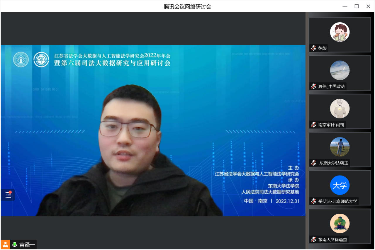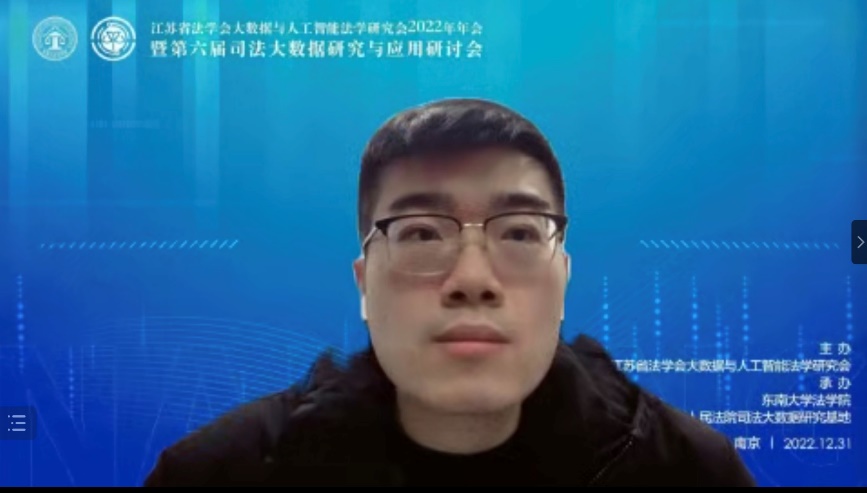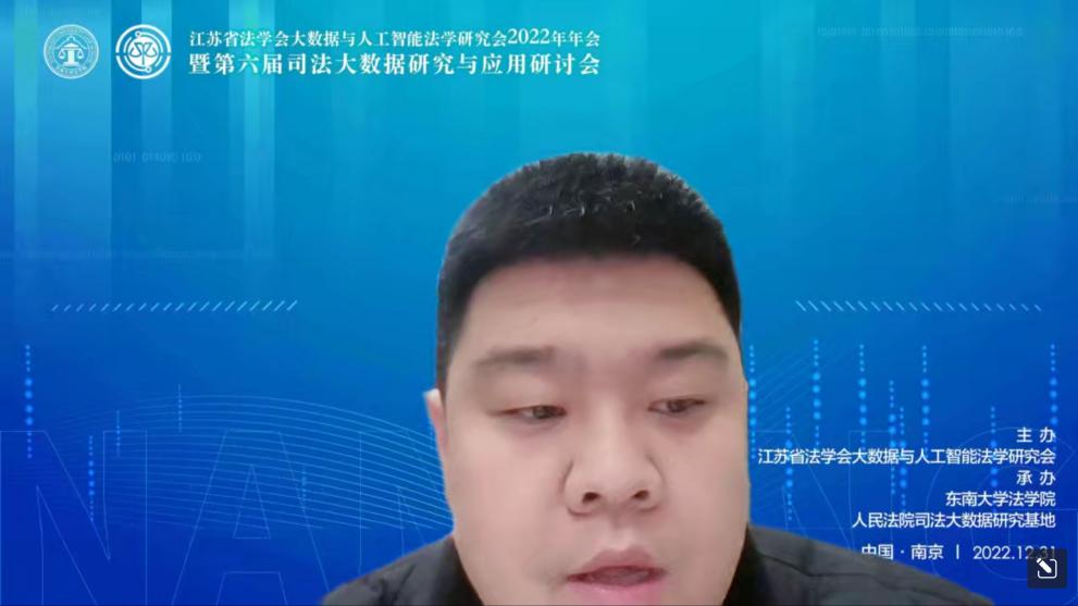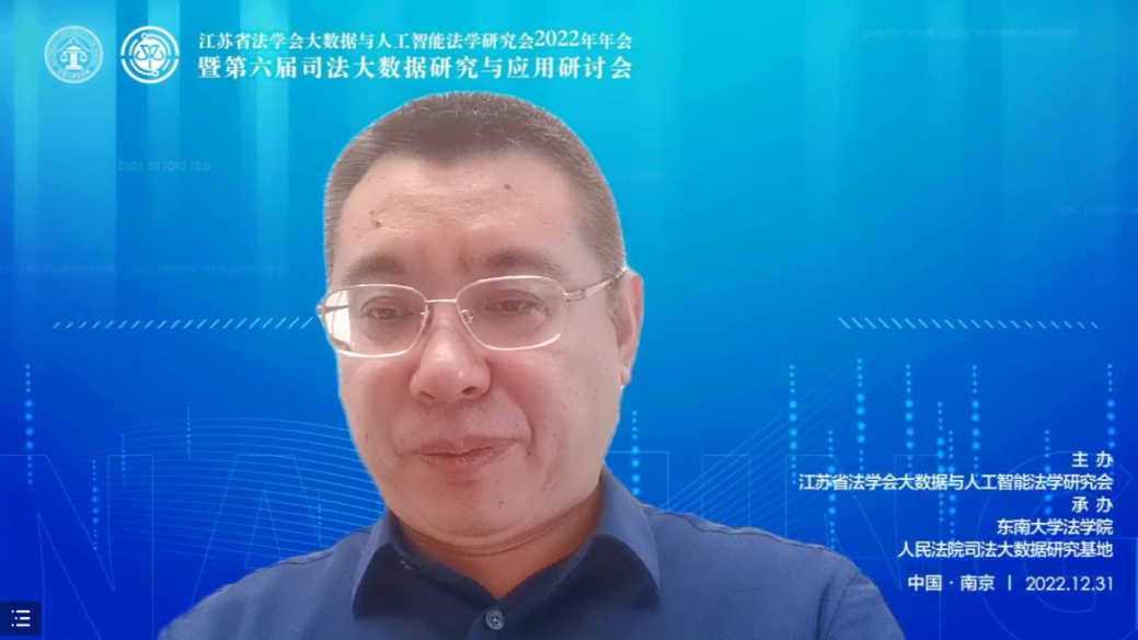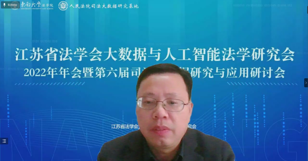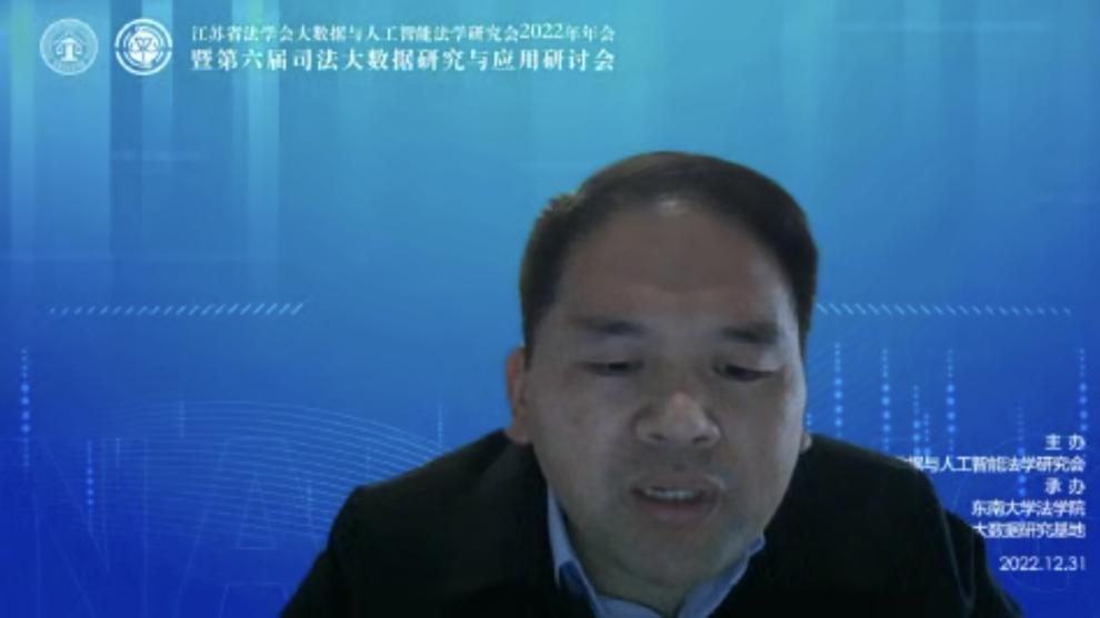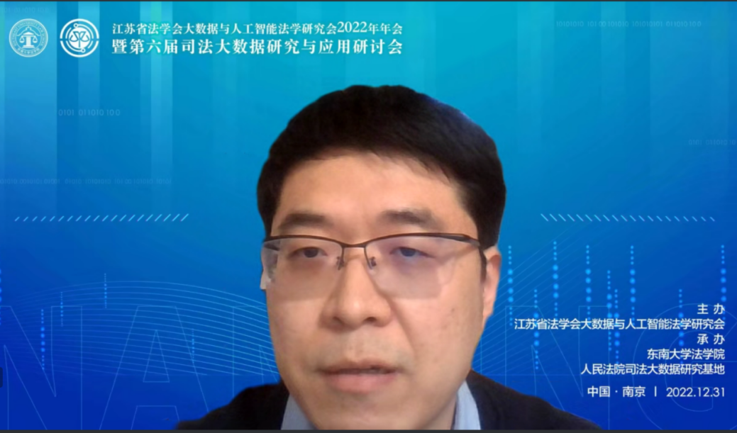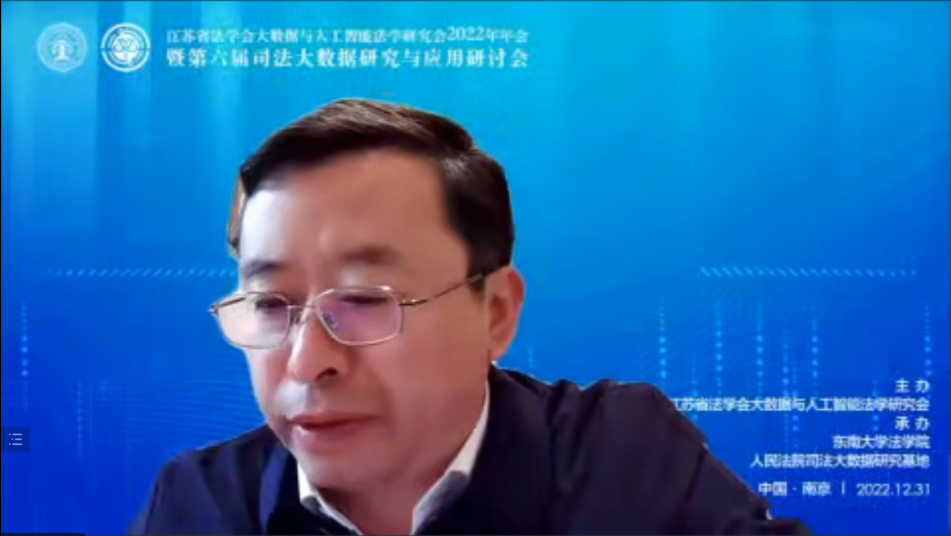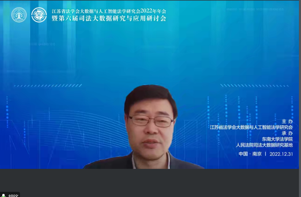2022年12月31日,由江苏省法学会大数据与人工智能法学研究会主办,366net必赢官网、人民法院司法大数据研究基地承办的“江苏省法学会大数据与人工智能法学研究会2022年年会暨第六届司法大数据研究与应用研讨会”在南京以线上方式召开。来自江苏省高级人民法院、江苏省人民检察院、江苏省司法厅以及南京、无锡、苏州、常州、徐州、南通等各地市实务部门的领导、专家,南京大学、366net必赢官网、南京师范大学、苏州大学等高校学者200余人参与会议。