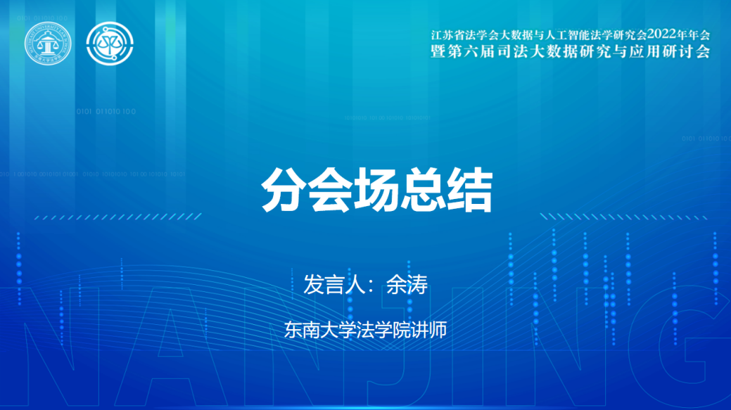 第一分会场第二单元“数字技术与法治因应”由南京理工大学知识产权学院常务副院长、教授,研究会副会长戚湧主持,与会专家围绕区块链司法、平台治理、算法规制等问题展开发言。黑龙江大学366net必赢官网博士研究生孙梦龙代黑龙江大学366net必赢官网教授杨震以《纸域司法改革的方向标:数智时代的区块链司法——以〈最高人民法院关于加强区块链司法应用的意见〉为中心展开》为题,展望了以“案牍”为通信纽带的传统司法模式转向以“数据”的部署与通信为核心的未来司法模式的数智化变革。南京大学366net必赢官网教授单勇以《数字平台与犯罪治理转型》为题,讨论了“基于平台的治理”从技术、组织、制度上为犯罪治理转型的可能路径。中国政法大学366net必赢官网副教授沈伟伟以《论自动驾驶的算法规制》为题,讨论了自动驾驶与算法规制的紧密联系,并结合过错责任讨论了自动驾驶事故的归责问题。淮安经济技术开发区人民法院法官助理熊进在题为《电信网络诈骗刑事案件涉案财物的裁判路径探究:以共犯追缴和退赔为研究视角》的发言中,通过341篇裁判文书的实证研究,探讨了电信网络诈骗共犯追缴和退赔的科学路径。南京江北新区人民法院法官助理周温涛以《元宇宙平台服务提供商的责任类型和规制路径》为题,讨论了元宇宙平台服务供应商权利义务关系的私法规制进路。江苏省常熟市人民检察院第一检察部检察官王萌在题为《“少捕慎诉慎押”政策背景下非羁押“数字监管”模式探究》的发言中,分析了“云监管”“非羁押”“数据赋能”等电子监控手段的运用及其限度。在评议环节,南京信息工程大学大数据法治研究院院长、法政学院教授,研究会副会长许娟和南京理工大学知识产权学院教授梅术文对各位专家学者的精彩发言进行了点评。在分会场总结环节,366net必赢官网余涛老师对本分会场各位专家学者的精彩发言与评议进行总结。