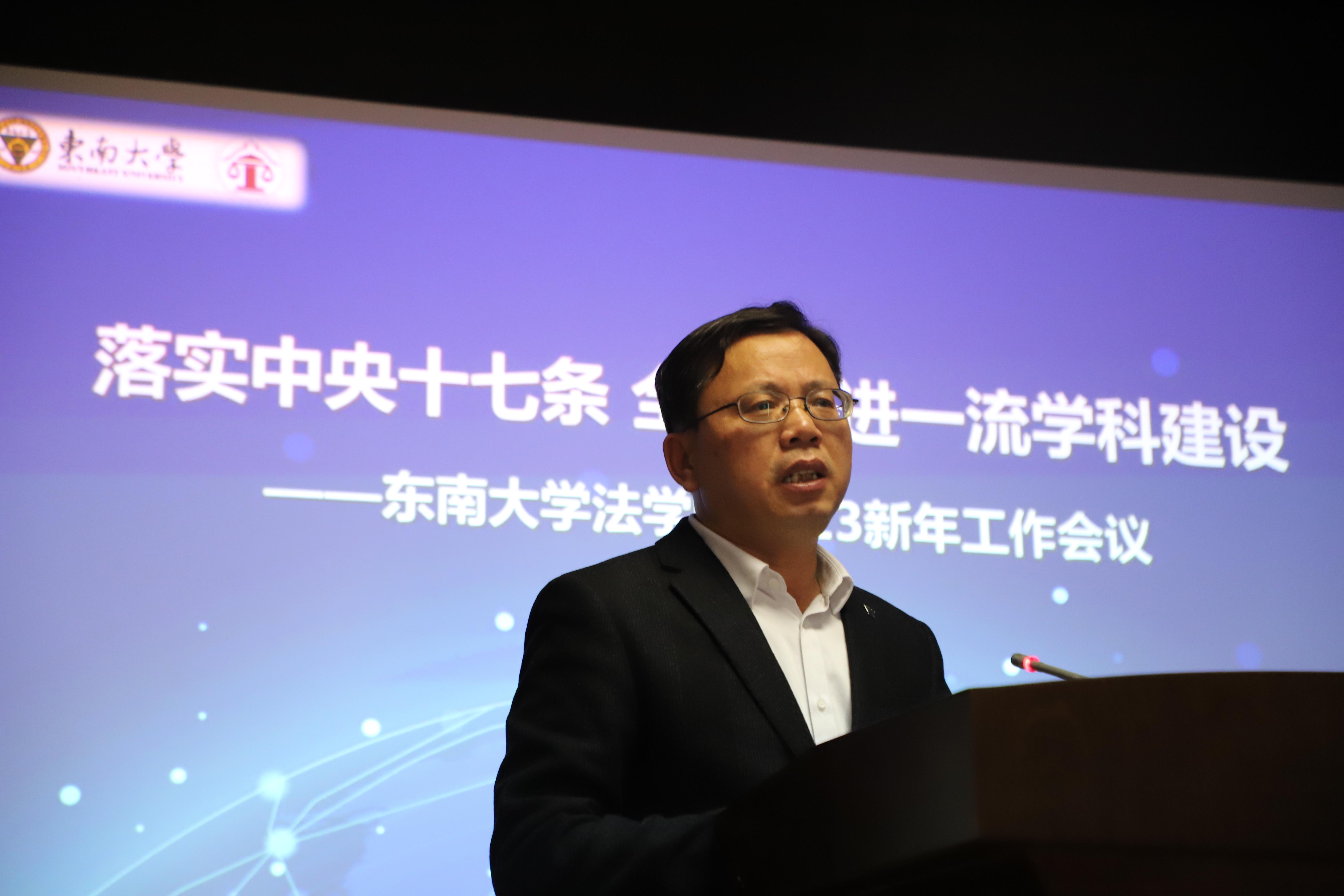 在回顾总结2022年工作成绩以后,欧阳院长重点阐述了2023年学院的工作规划,把2023年学院工作的主题确定为“全面提升”。欧阳院长带领大家学习了中办、国办关于《关于加强新时代法学教育和法学理论研究的意见》(“法学十七条”),学习了366net必赢官网黄如校长“学术至上、生为首位、师为根基、立德树人、服务国家、突破前沿”的二十四字教育方针,回顾了之前刘艳红院长提出的“一个学科、一批人才、一本期刊、一栋大楼”的“四个一”办学思路,然后提出了未来366net必赢官网的工作思路: