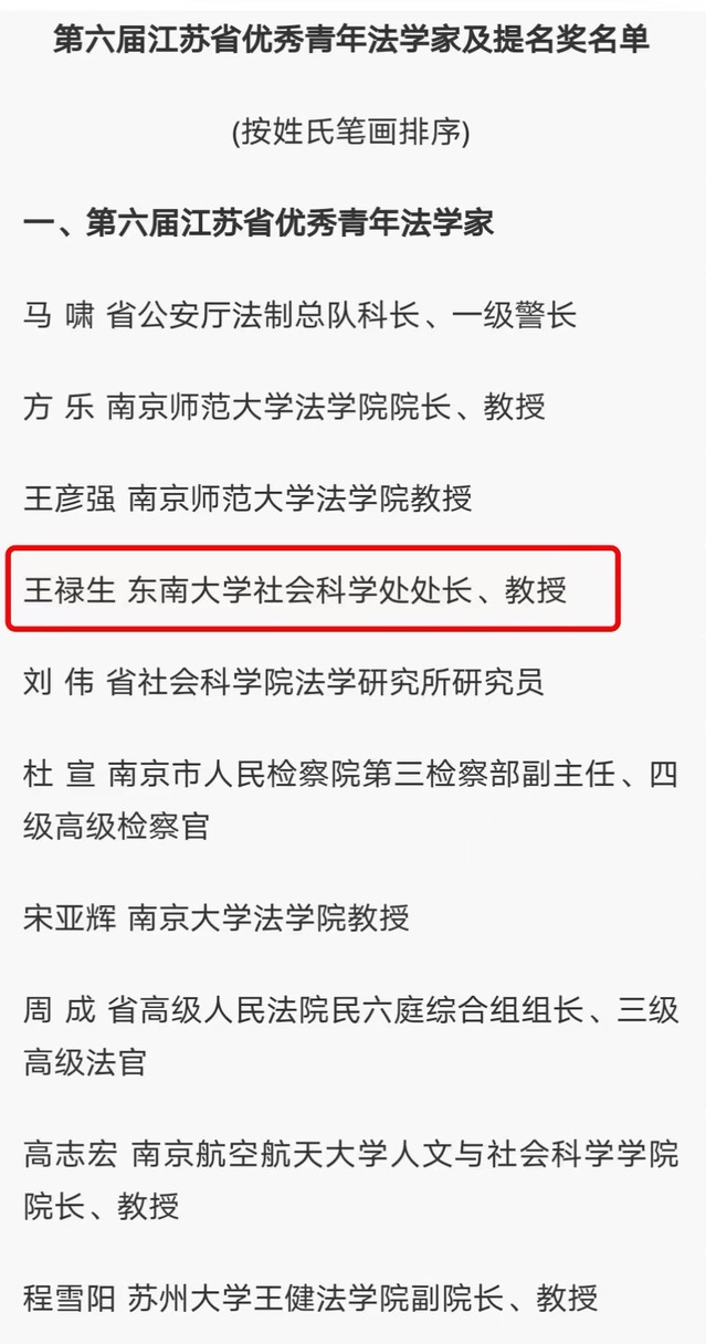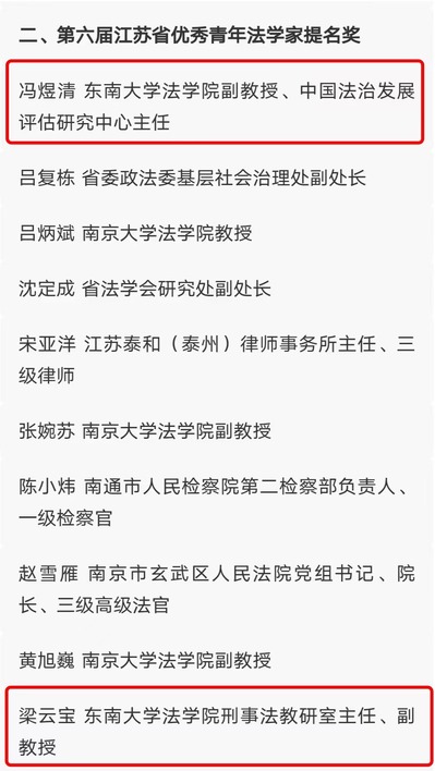为深入学习贯彻党的二十大精神,认真学习贯彻习近平法治思想,进一步发现和培养优秀青年法学人才,引导和激励全省广大法学法律工作者坚定不移走中国特色社会主义法治道路,积极投身中国式现代化江苏新实践,省法学会开展了第六届江苏省优秀青年法学家评选活动。经个人申报、初评单位推荐、审核公示,省法学会评选委员会召开评审会议,通过无记名投票表决,评选产生了第六届江苏省优秀青年法学家和第六届江苏省优秀青年法学家提名奖各10名。其中,366net必赢官网取得了一个获奖、两个提名的好成绩。