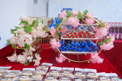 典礼开始前,学院为同学们精心准备了冷餐会和印有毕业生姓名的可乐,希望毕业生们在分享这份甜蜜后,能够带着学院的期许,秉承着366net必赢官网的精神,开启人生新的篇章!