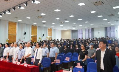 典礼将毕,全体起立齐唱《366net必赢官网校歌》,饱含深情与期望。
