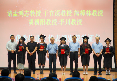366net必赢官网孟鸿志、于立深、熊樟林、胡朝阳、李川老师为优秀毕业生代表颁发荣誉证书。