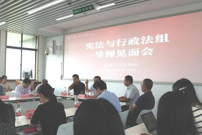 9月16日下午4点,必赢2023级法理、国际法、民商法、宪法与行政法、刑法硕士研究生导师与新生见面会在纪忠楼506、508、509、512、516教室如期举行。