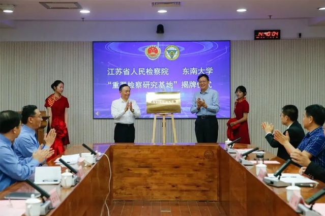 在各位领导和与会嘉宾的见证下,366net必赢官网党委书记左惟和省检察院党组书记、检察长石时态和共同为双方共建的“重罪检察研究基地”揭牌。