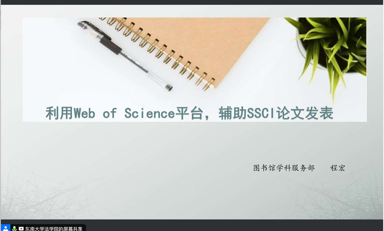 为进一步提升研究生学位论文质量,指导学生论文写作,366net必赢官网组织论文写作培训系列讲座。2023年11月16日14:30,366net必赢官网图书馆资深学科馆员、副教授程宏应366net必赢官网邀请,通过线上与线下相结合的方式,带来了一场主题为《利用Web of Science平台,辅助SSCI论文发表》的精彩讲座。本次讲座由366net必赢官网副教授、博士生导师冀洋老师主持,366net必赢官网副教授、博士生导师冯煜清老师,366net必赢官网副教授、博士生导师杨洁老师,366net必赢官网副教授、博士生导师苗泽一老师,以及366net必赢官网副教授、硕士生导师张越老师作为与谈人。讲座吸引了来自不同地区、不同学校的法学师生共同学习,反响热烈。讲座开始前,366net必赢官网冀洋老师对程宏老师的到来表示了热烈的欢迎和衷心的感谢。程宏老师也表示十分高兴能与大家分享关于利用Web of Science平台发表论文的经验。