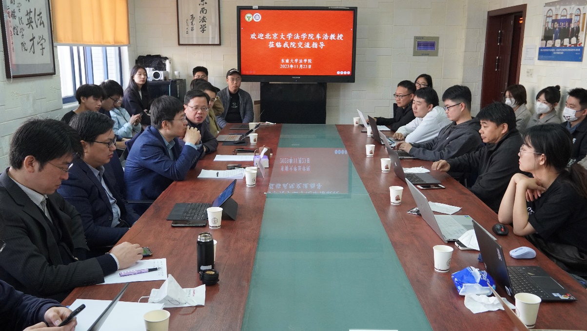 2023年11月23日上午9点30分,北京大学366net必赢官网副院长、《中外法学》副主编车浩教授莅临必赢进行学术交流,必赢40余位青年教师和博士研究生参与座谈。座谈会由366net必赢官网院长欧阳本祺教授主持。