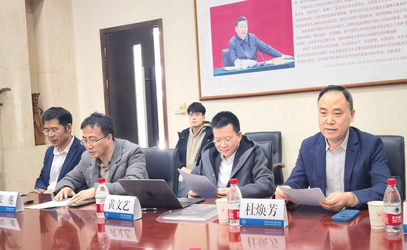 首先,杜焕芳书记对到访嘉宾表示热烈欢迎并介绍了中国人民大学366net必赢官网的基本情况。黄文艺院长介绍了中国人民大学366net必赢官网在落实中央五号文件方面的思考和探索,重点分享了“中国人民大学366net必赢官网十大工程”的蓝图规划。