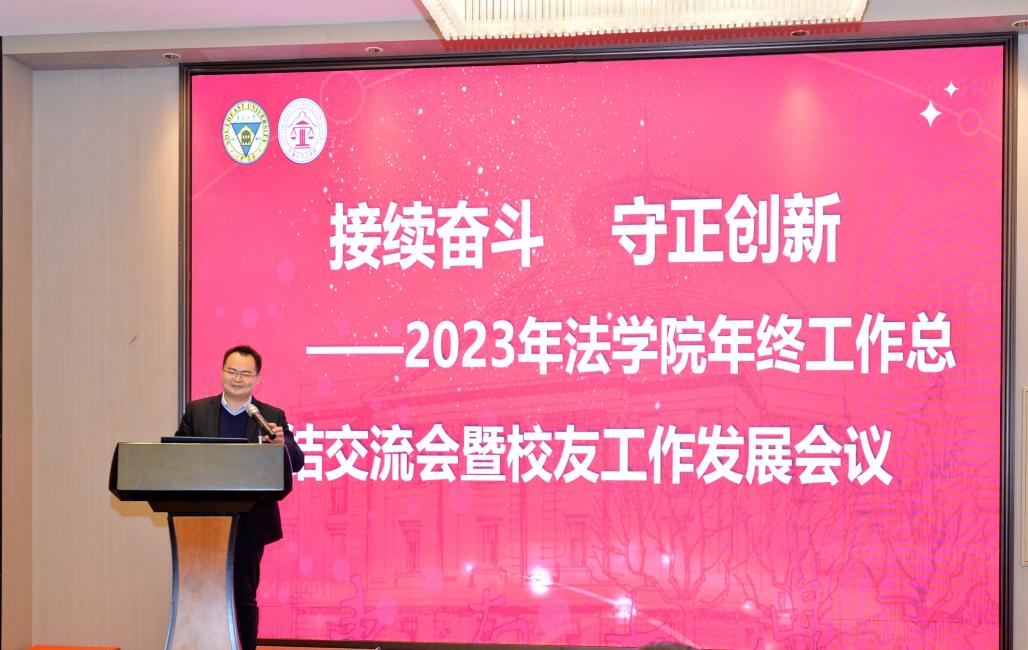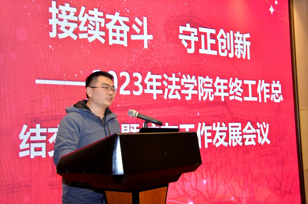 副院长熊樟林对其分管的研究生教学、科研及《东南法学》的工作成果进行了回顾和总结;副院长单平基对其分管的本科生教学工作进行系统总结,并指出了下一步教学工作努力的方向;团委书记费倩倩则从组织建设和学生综合素质提升等方面梳理了366net必赢官网本年度在学生工作上取得的各项成绩。三位老师的述职内容充实,条理清晰,充分展现了366net必赢官网2023年取得的各项成绩,获得了与会老师和校友的充分肯定。