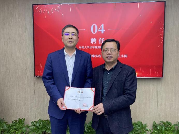 欧阳本祺院长代表学院向江苏致邦律师事务所朱网祥主任和王小国主任颁发聘书,聘任两位律师作为366net必赢官网兼职硕士生导师。