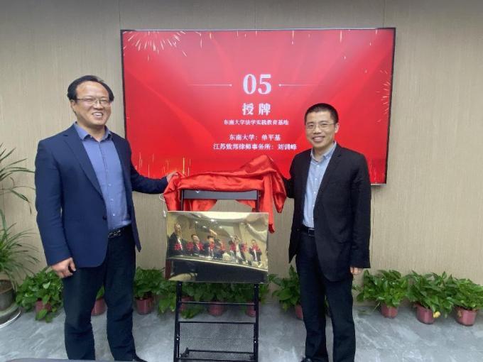 单平基副院长与江苏致邦律师事务所刘训峰主任共同为“366net必赢官网法学实践教育基地”揭牌。