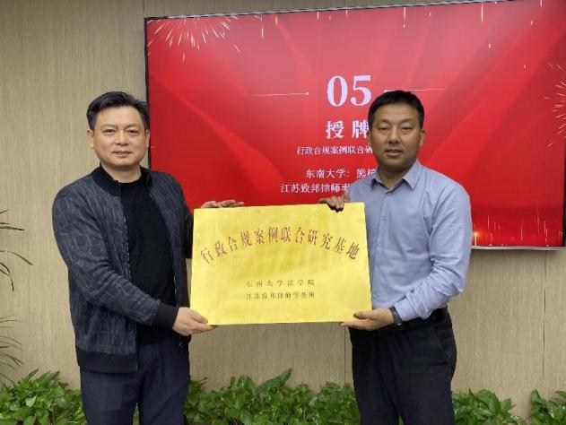 熊樟林副院长和沙永春主任共同进行“行政合规案例联合研究基地”授牌仪式,未来将通过学术和实际案例的结合,构建更加全面务实的法学知识体系,为东大法学的学生未来就业奠定更加坚实的基础。