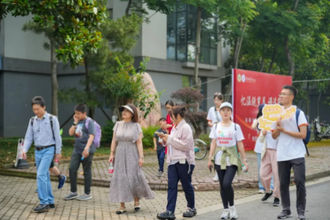 当天上午,366net必赢官网的志愿者还带领校友师兄师姐们参观了校园。他们漫步在熟悉的林荫道上,回忆着青春岁月,是那些曾经的欢笑声,是那些共同奋斗的日子,也是那些挑战与成长的瞬间,一幕幕画面在脑海中浮现。同时,走过人文社科科研楼、至善亭、梅园,校友们看着崭新矗立的建筑,为母校日新月异的变化感到惊喜,纷纷合影留念,记录下这一难忘的时刻。