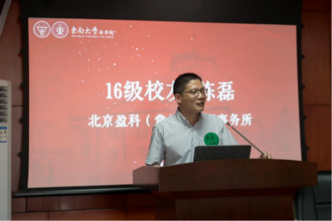 2016级校友陈磊,现任职于北京盈科(常州)律师事务所。他强调,长远的职业发展需要我们一直保有学习的能力。成功一般不能复制,反而失败能够让我们汲取教训,积累经验。