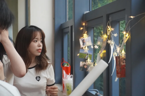 胡博、符晨筱、赵汝慧、许秉媛同学带来了歌曲串烧《这世界那么多人》《再见》。