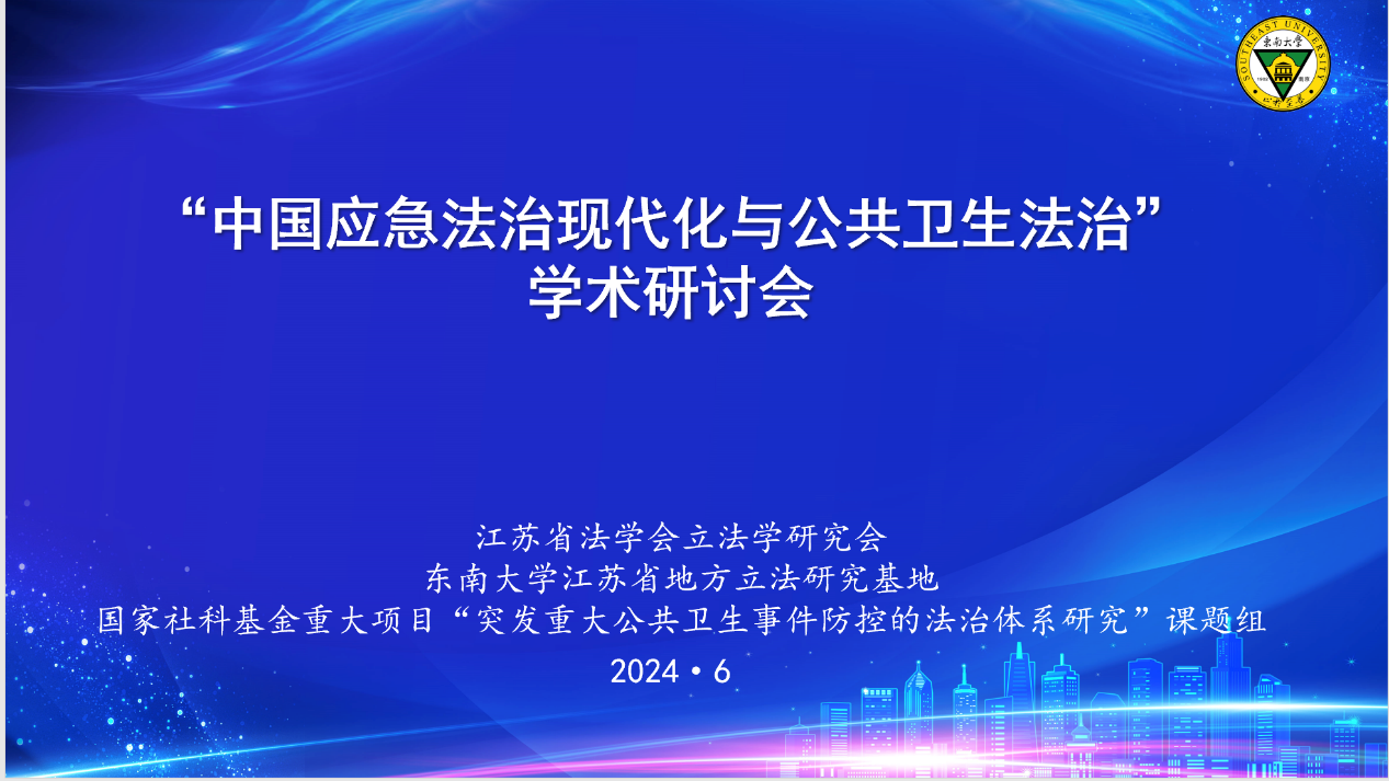 2024年6月22日,由江苏省法学会立法学研究会、366net必赢官网江苏省地方立法研究基地、国家社科基金重大项目“突发重大公共卫生事件防控的法治体系研究”课题组联合主办的“中国式应急法治现代化与公共卫生法治”学术研讨会在366net必赢官网九龙湖校区成功举行。来自366net必赢官网、山东大学、南开大学、中国政法大学、中南财经政法大学、西南政法大学、中共北京市委党校、浙江工商大学、上海政366net必赢官网、广东外语外贸大学、广州大学、南京大学、河海大学、南京师范大学、南京工业大学、南京审计大学、苏州大学、江苏大学、江苏师范大学、常州大学、江苏海洋大学、南京航空航天大学、南京财经大学、南京中医药大学等院校和江苏省法学会、北京市人大等单位的60余位领导、嘉宾和专家学者出席了此次研讨会。