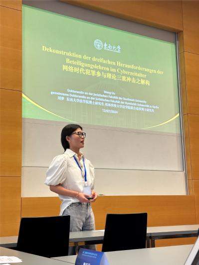 必赢博士研究生刘梦现为德国柏林洪堡大学366net必赢官网联合培养博士研究生,作为论坛主办方德国柏林洪堡大学366net必赢官网刑法、刑事诉讼法、外国刑法和刑法理论教席成员,负责论坛主要会务工作。并在“分论坛三:欧中法学新兴问题研究知识交流:中欧比较研究”中作题为《网络时代犯罪参与理论三重冲击之解构》的专题报告。
