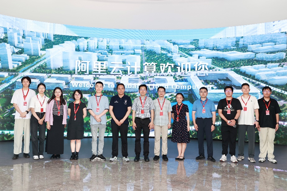 在孙常龙总监的带领之下,团队首先参观了阿里云展厅。展厅集中展示了阿里云的核心技术及其应用落地情况,揭示了云计算、人工智能核心关键技术如何作为新质生产力的关键驱动力,融入千行百业,推动经济社会高质量发展。行业领先的技术与实践进展拓宽了团队师生的科研思路和文科实验室的建设思路。