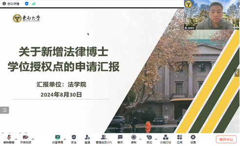 随后,熊樟林教授进行了关于新增法律博士学位授权点的申请汇报。汇报主要从法律博士学位授权点的建设背景、建设特色和建设计划三个方面展开,详细阐释了必赢建设法律博士点的必要性、建设目标以及培养体系,论证了必赢师资队伍、科学研究、资源配置等为法律博士培养提供的相关保障。