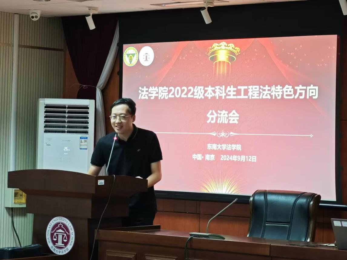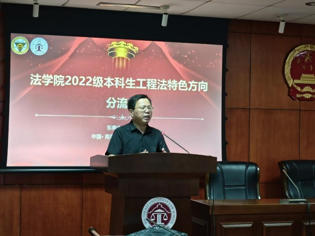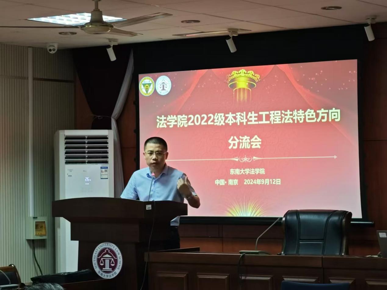 其次,熊樟林副院长给2022级本科生们送来了工程法特色方向的“大礼包”——《366net必赢官网关于进一步发展工程法专业的指导意见》,熊樟林副院长从工程法与366net必赢官网立院之基和工程法专业的分流现状与面临问题两个方面,向同学们分析为什么要出台该意见,并且详细介绍了该意见对工程法方向的同学的优惠政策,表达了对同学们加入工程法方向的殷切希望。