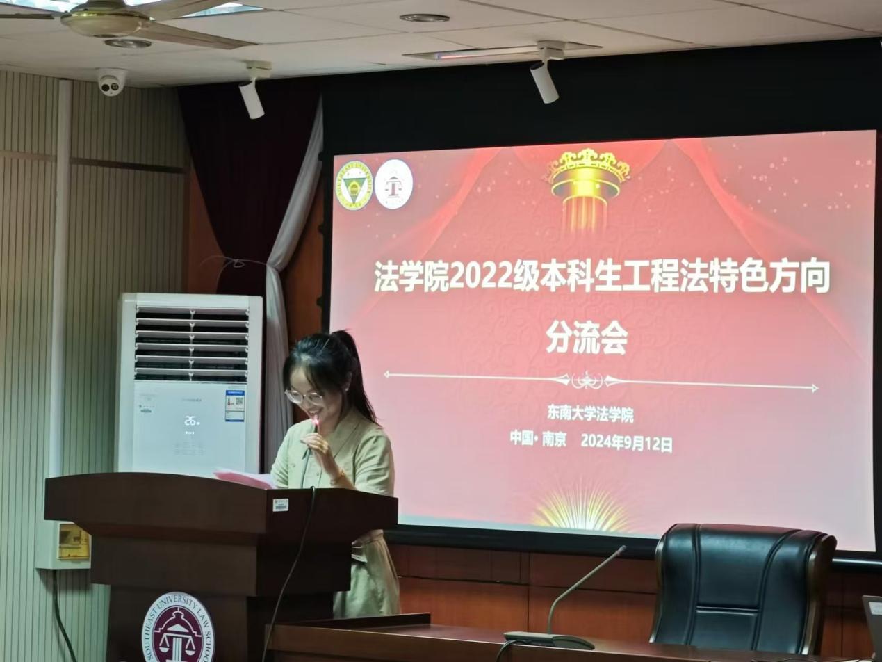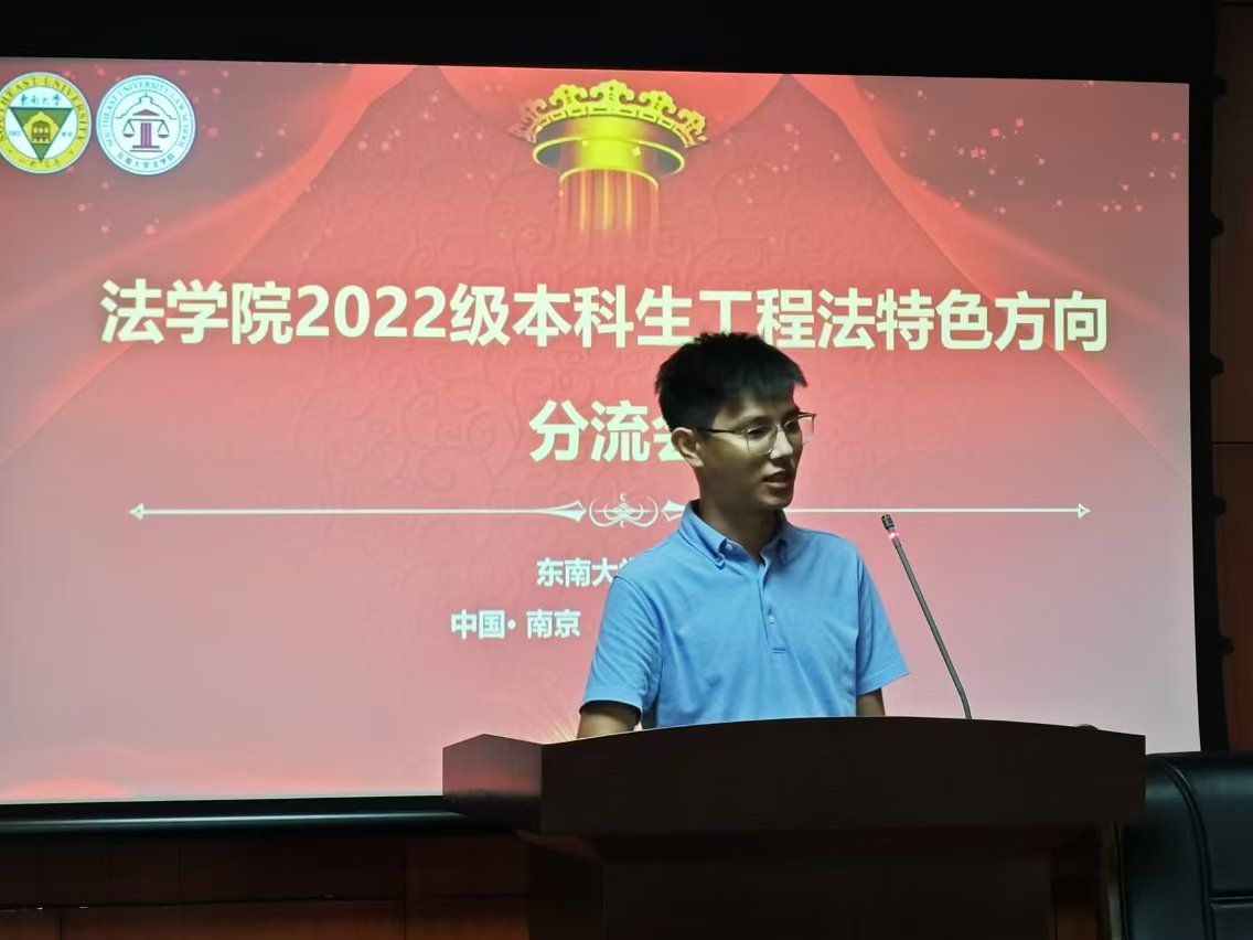 然后,工程法方向优秀学生代表21级本科生王昊从学科顾虑和学业优势两个方面向同学们分享了自己学习工程法的经验和心得体会。