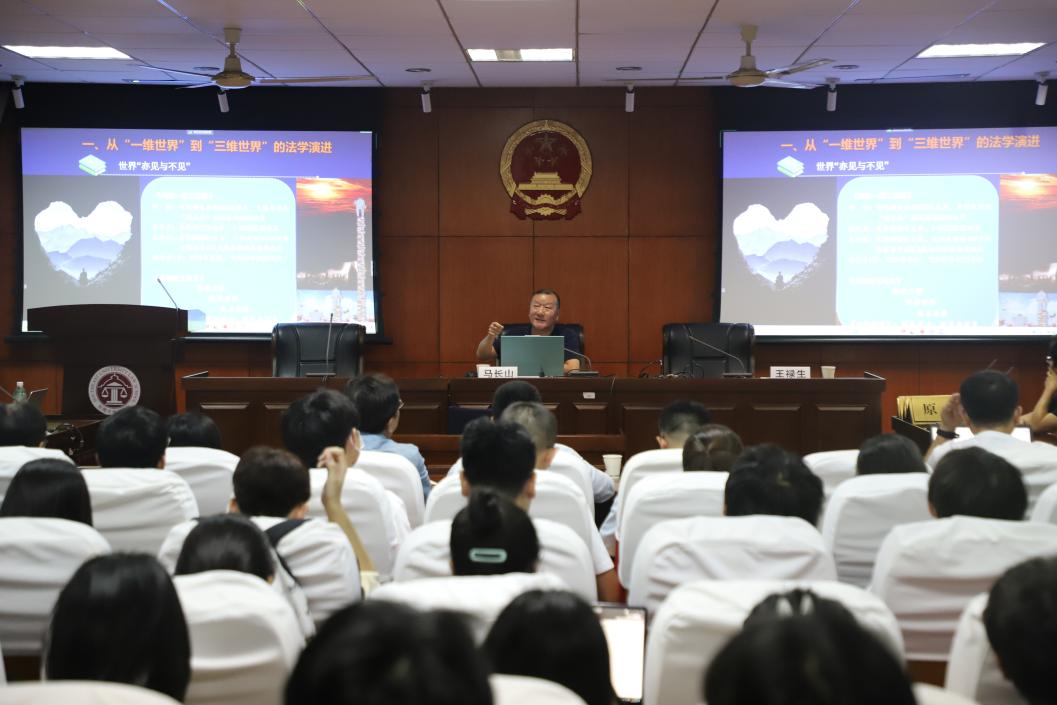 讲座中,马长山教授首先介绍了“一维世界”到“三维世界”的法学演进,带领师生们穿梭于传统法学、现代法学与数字法学;其次,阐明了数字法学的核心范畴,涵盖数字权利、数字权力以及数字正义;最后,展望了中国的自主法学知识体系的构建。马长山教授的讲授深入浅出,语言风趣幽默,其间引经据典,旁搜远绍,引发了在会师生的深入思考。