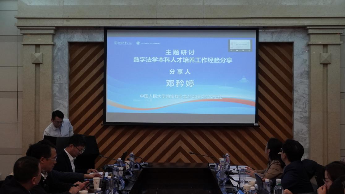 中国人民大学国家数字监督治理实验室主任邓矜婷教授分享了中国人民大学数字法学人才培养的经验。邓教授表示,人大通过引入专职工程师建立了交叉研究院,新设了数字法学课程,对出版相关教材做出了支持。邓教授同时也建议,学校可通过明确培养目标、构建数字法学实训环境、探索师生跨校合作等方式,解决数字法学建设的核心问题。