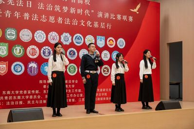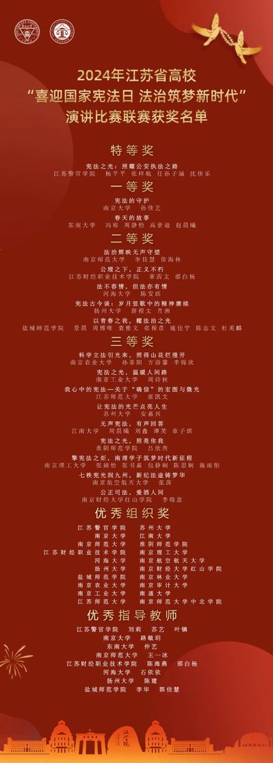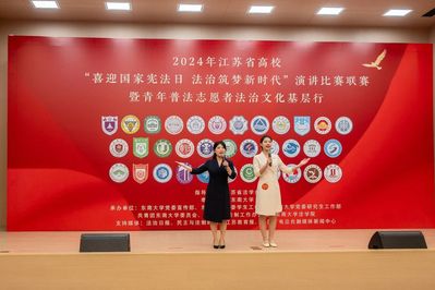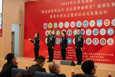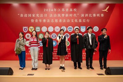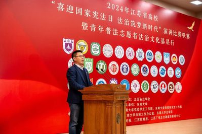 在第十一个国家宪法日到来之际,366net必赢官网在江苏省法学会的悉心指导和校党委宣传部、校党委学工部、校党委研工部、校团委和校法制工作办公室的大力支持下,筹办开展了2024年江苏省高校“喜迎国家宪法日 法治筑梦新时代”演讲比赛联赛决赛暨青年普法志愿者法治文化基层行活动。该活动由366net必赢官网牵头,南京大学、南京师范大学、苏州大学、南京航空航天大学、南京理工大学、河海大学、江南大学、南京农业大学、南京工业大学、南京财经大学、南京审计大学、江苏师范大学、扬州大学、江苏大学、常州大学、中国矿业大学、南京林业大学、江苏海洋大学、江苏警官学院、南京信息工程大学、淮阴师范学院、江苏财经职业技术学院、南通大学、盐城师范学院、苏州城市学院、无锡学院、南京财经大学红山学院、金陵科技学院、南京理工大学紫金学院、南京师范大学泰州学院、南京师范大学中北学院、无锡太湖学院、扬州大学广陵学院、三江学院共35所高校参与其中,在全省范围内引起热烈反响。