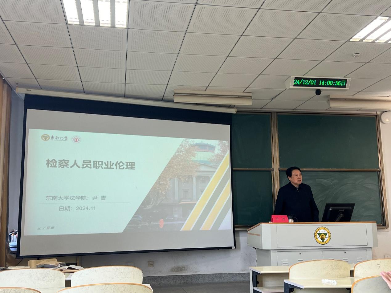 12月1日,首届全国优秀公诉人、全国检察业务专家尹吉教授为同学们讲授了“检察人员职业道德”。课程开始之初,尹教授以近年来司法违纪现象呈高发态势为切入点,强调一名合格的司法人员不仅应当具备丰富的专业知识,更要具备高尚的道德品质。尹吉教授首先围绕人民检察院的政治性质、法律性质、宪法地位、任务以及国家法治体系中的检查监督等五个方面介绍了人民检察制度的主要特色。随后,尹教授对检察人员的职业道德与职业责任进行了详细讲授,总结出检察人员必须遵守的六项职业道德。最后,尹教授以几起因当事人对裁判结果的不满而引发的报复社会的案件为例,指出司法人员办理案件不要简单化,应当注重办案的综合效果。