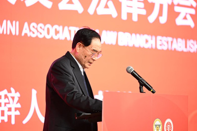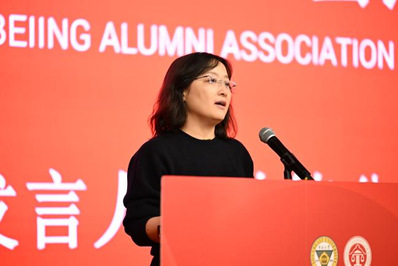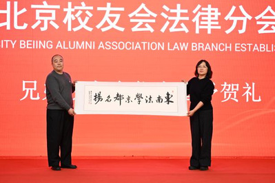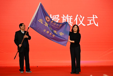 随后,马会长向北京校友会法律分会第一届组织机构成员授旗。法律分会会长王晓莉代表法律分会向与会嘉宾表示热烈欢迎和诚挚感谢,并表达了法律分会第一届组织机构团结协力、做好服务工作的决心。
