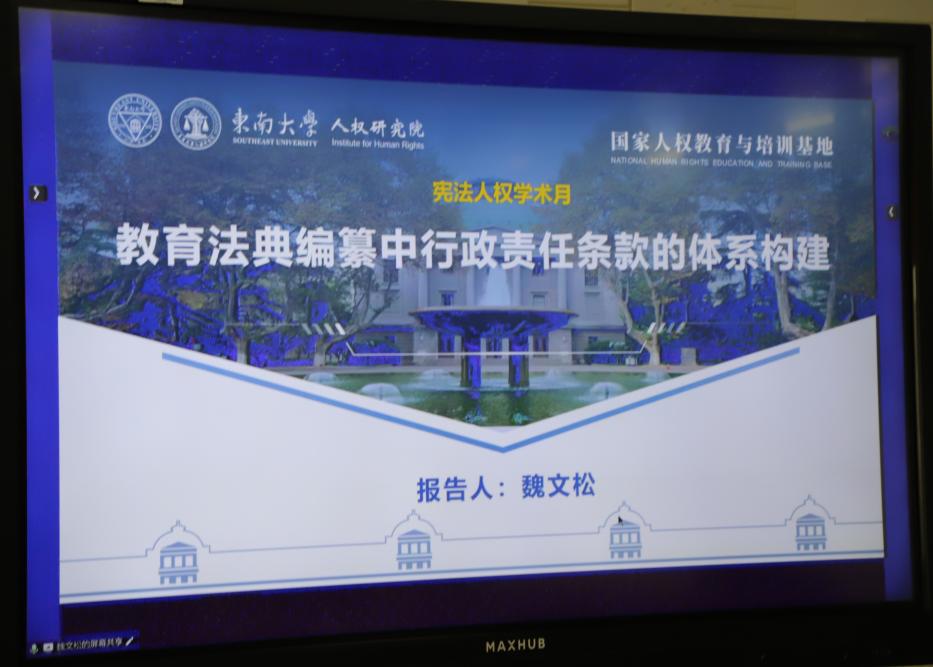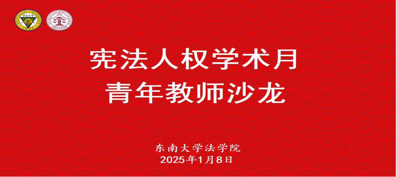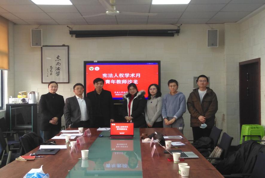 1月8日下午,东南法学第二十四期东南法学青年教师沙龙“学术月”主题沙龙在366net必赢官网四楼会议室顺利举行。本次沙龙由366net必赢官网青年教师发展委员会组织,366net必赢官网宪法学与行政法教研室陈道英副教授担任主持人,366net必赢官网龚向和教授、刘练军教授、张雪莲副教授、朱姗姗研究员、魏文松博士后,以及其他366net必赢官网青年师生共同参与本次活动。本次沙龙以“宪法人权学术月”为主题。